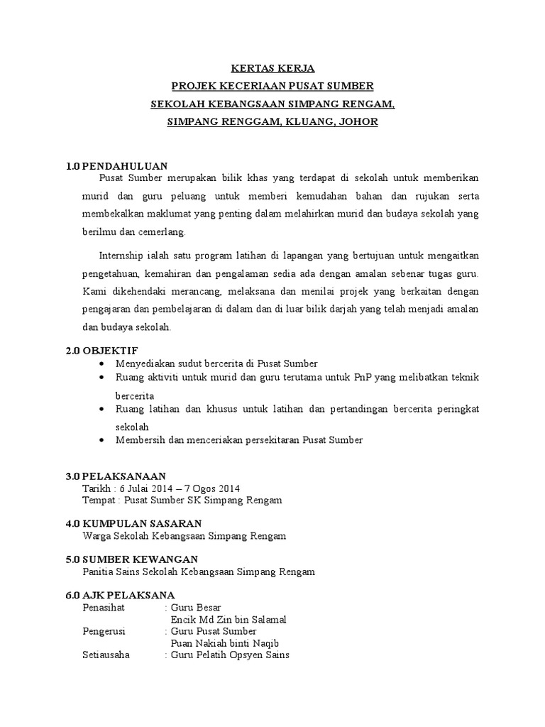 Kertas Kerja Projek Keceriaan Pusat Sumber Pdf