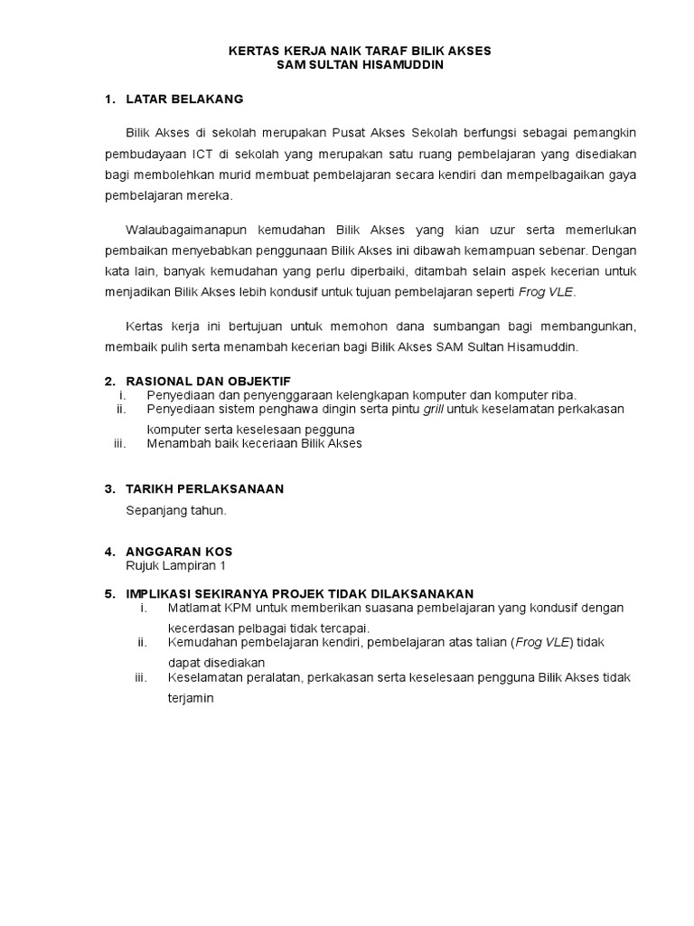 Kertas Kerja Mohon Sumbangan Menaik Taraf Infrastruktur Prasekolah Sk Air Putih Pdf